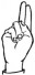 На ћирилици написано ВОЈИСЛАВ БАДРИЋ састоји се из 14 слова [?]. Исписано ћириличном једноручном азбуком за глувонеме: